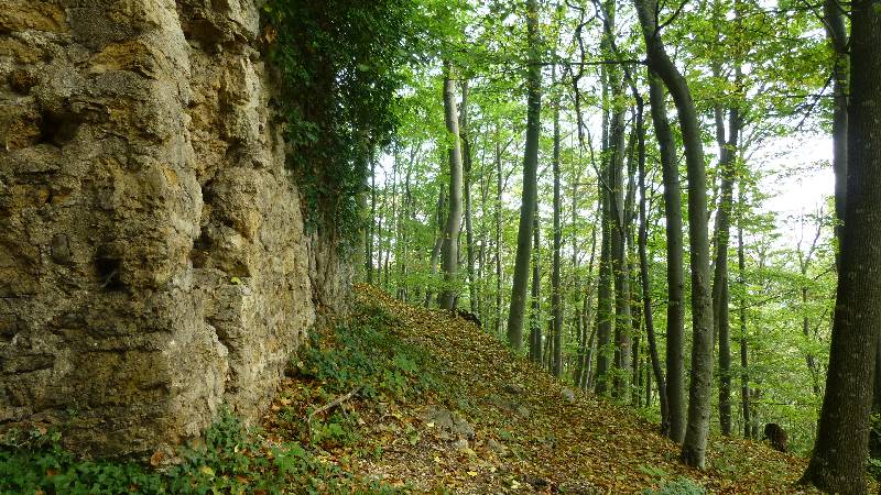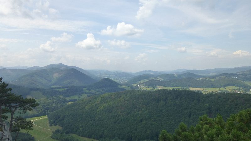 Motiviert für die WanderungDer Weg zur Ruine führt über einige WurzelnDie Höhle und rechts daneben die Steinmauer der RuineHier entlang zur RuineAussichtsplatz bei der RuineMan kann hier auch hinaufkletternDer Wanderweg ist gut markiertIn der Mitte sieht man Hafnerberg und die KircheEndlich wieder ein GipfelkreuzMit Sally (gesichert) auf der AussichtswarteEine neugierige KuhDer liebe Ort HolzschlagAuch am Rückweg sollte man aufmerksam sein, um keine Abzweigung zu verpassenZiemlich schmaler Weg inmitten der Natur